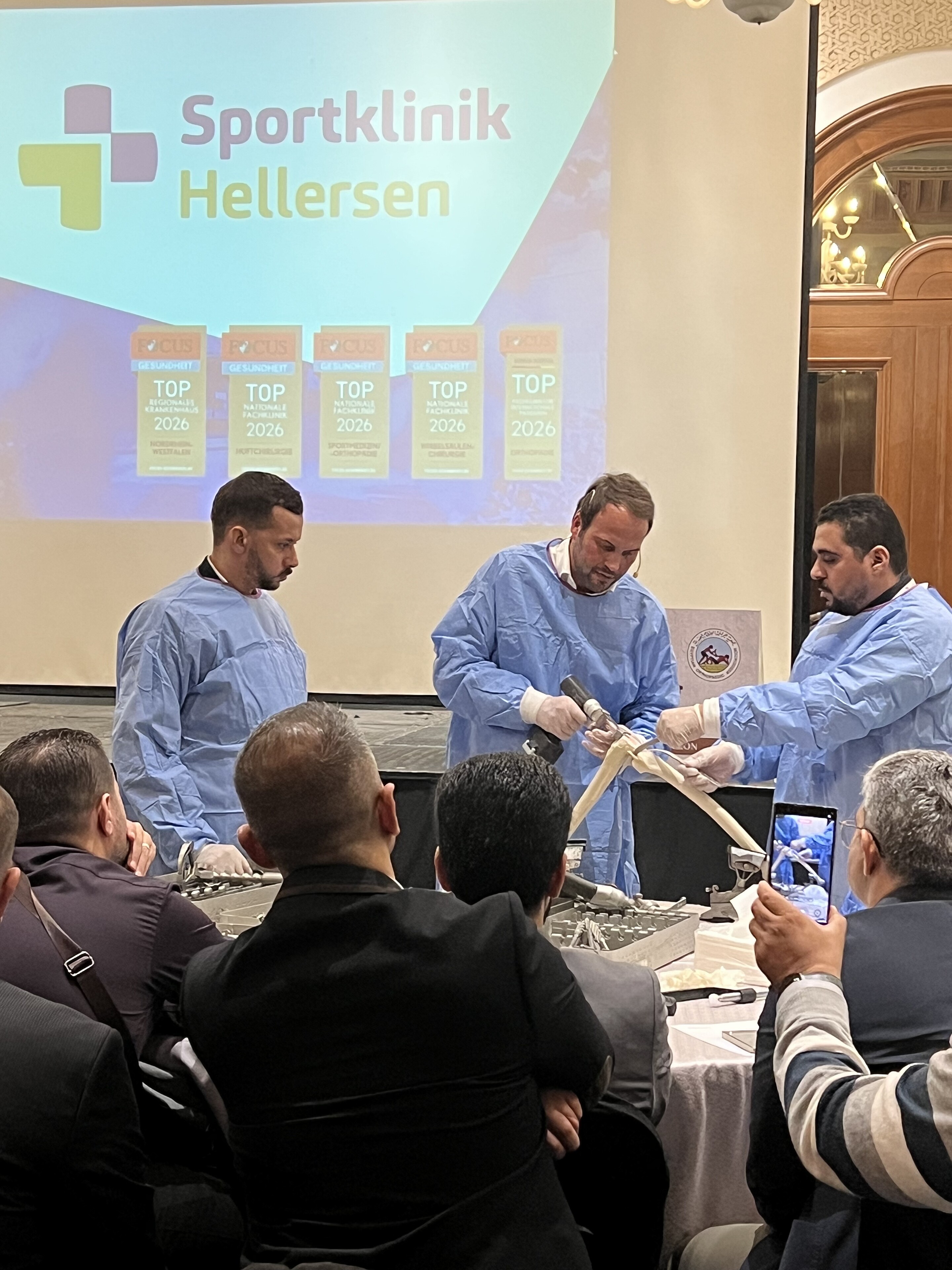 The second live broadcast showed a cruciate ligament operation, which underlined the surgical expertise and technical precision of the Sportklinik Hellersen in joint surgery. Head physician Dr. Markus Leyh commented on the procedure for the specialist audience in Cairo, who showed great interest.