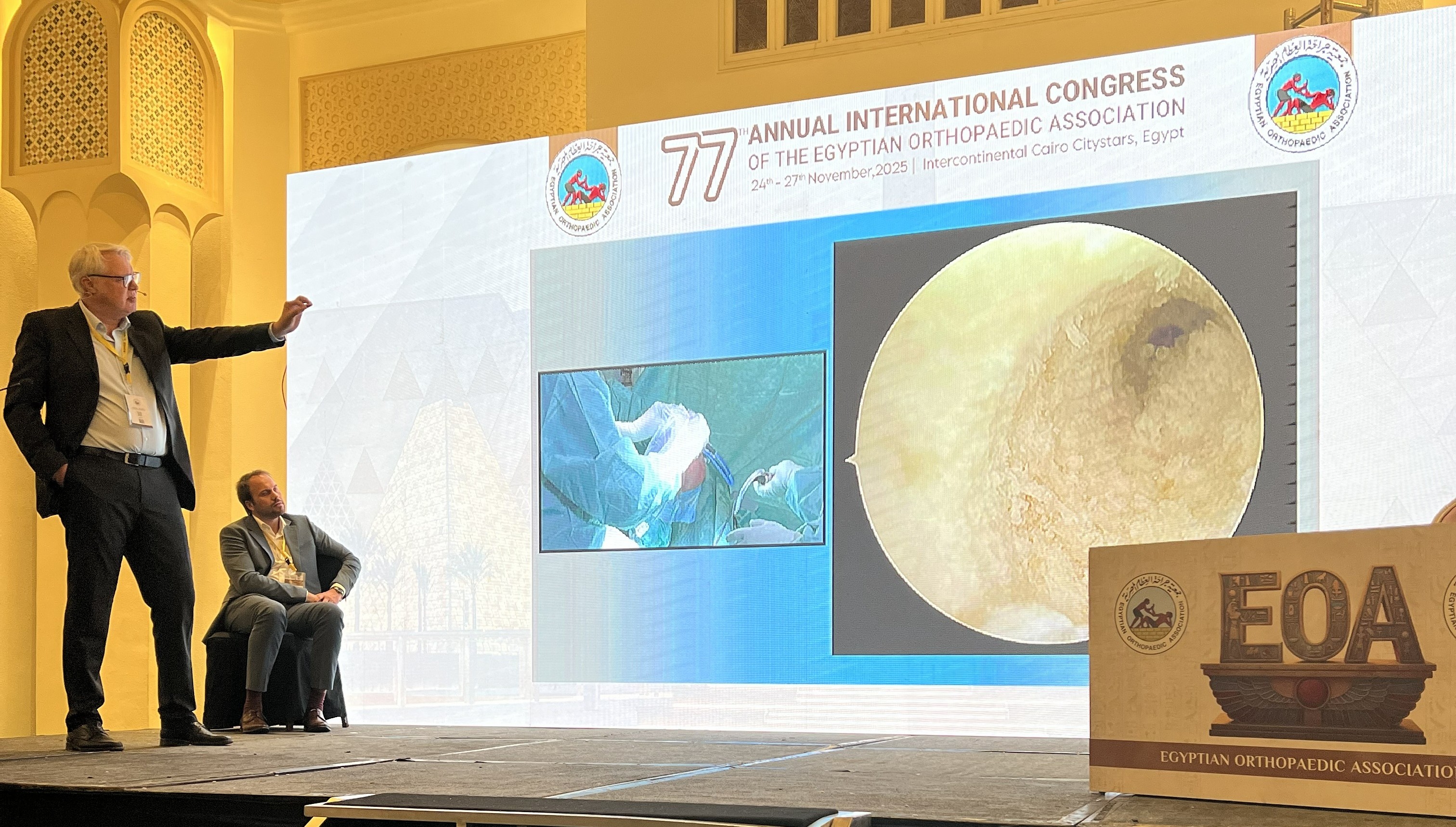 The Sportklinik Hellersen made a strong international statement at the 77th annual congress of the Egyptian Orthopaedic Association (EOA) in Cairo: At the express invitation of the congress organizers, the specialist clinic presented itself as an international partner - and for the first time in the history of the congress, live operations from a German clinic were transmitted to Cairo. The Sportklinik Hellersen presented state-of-the-art orthopaedic medicine from Lüdenscheid to over 5,000 trade visitors.