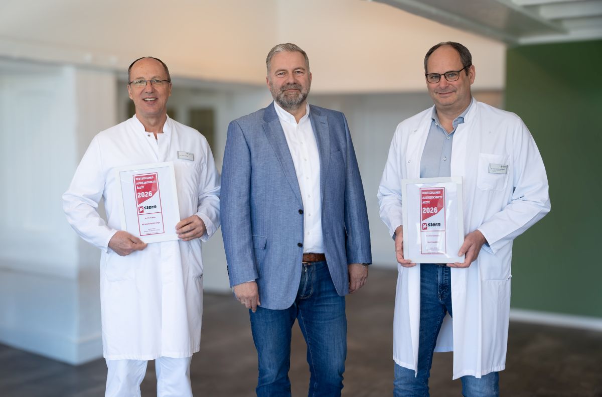 Gleich zwei erstklassige Mediziner der Sportklinik Hellersen wurden in die aktuelle Stern-Ärzteliste 2026 aufgenommen. Dr. Oliver Meier, Chefarzt der Speziellen Wirbelsäulenchirurgie im Deutschen Wirbelsäulen- und Skoliosezentrum, wird im Bereich Wirbelsäulenchirurgie ausgezeichnet und Dr. Ulrich Schneider, Leitender Arzt der Sportmedizin, gehört im Bereich Sportmedizin zu den empfohlenen Spezialisten.